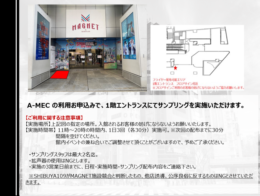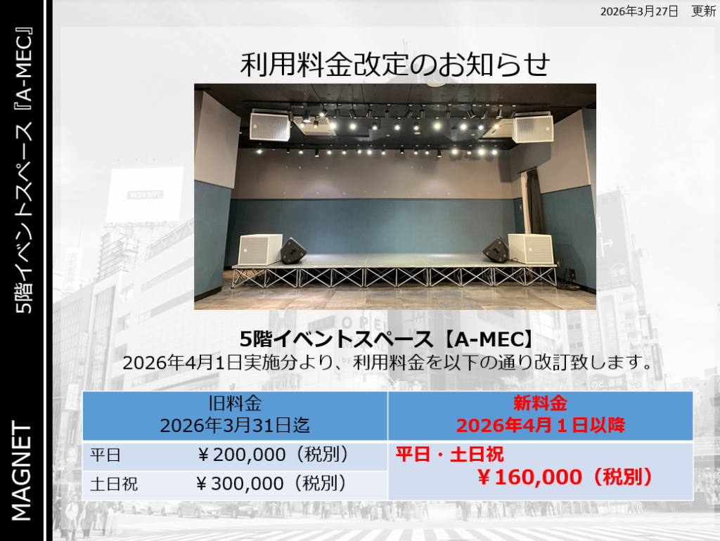 MAGNET by SHIBUYA109 5階イベントスペース【A-MEC】利用料金が以下の通り改定となります。