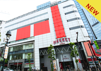 スクランブル交差点に面した壁面を大きく使用しインパクトのある広告掲出が可能です。懸垂幕との組み合わせなど様々な掲出プランをご用意しています。