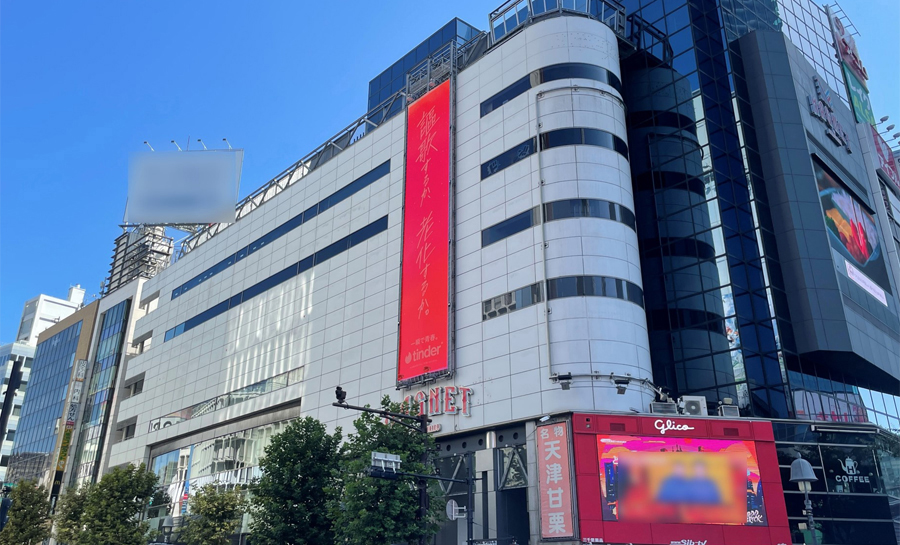 渋谷駅からすぐのスクランブル交差点に面したビジュアル幕。広範囲からの視認性の高い好条件の媒体です。